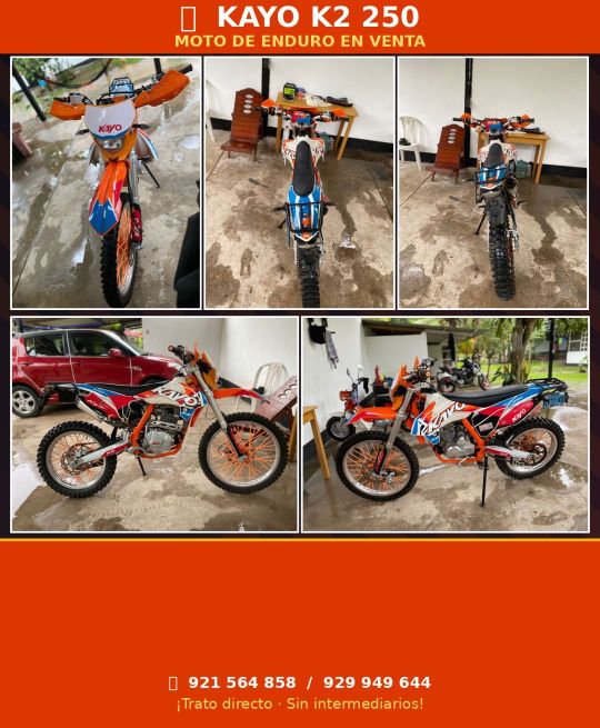 Excelente oportunidad para los amantes del todo terreno. Se vende KAYO K2 250 en perfecto estado, con muy poco recorrido y uso estrictamente particular. Lista para usar desde el primer día.